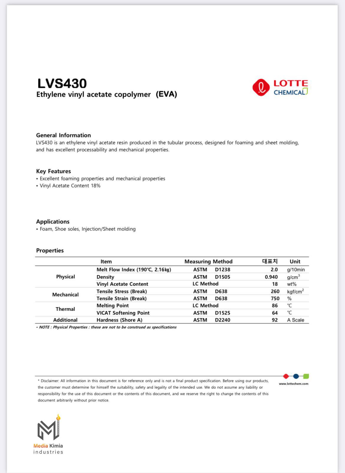 Lotte Chemical | EVA | VA810 | Processability. Excellent adhesion | Hot-melt adhesive | |